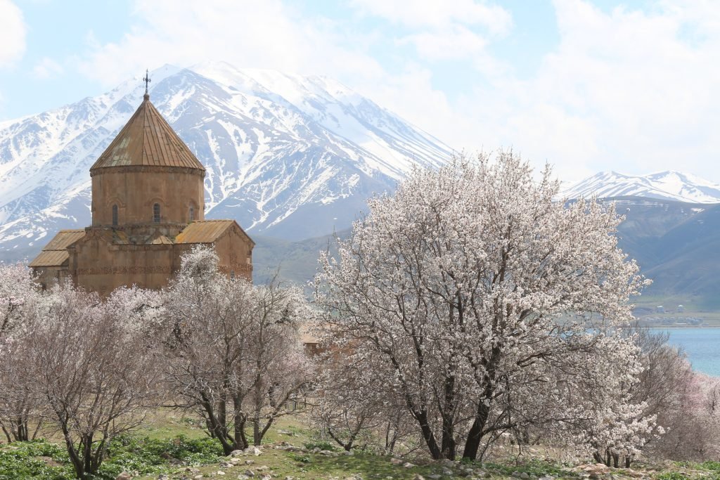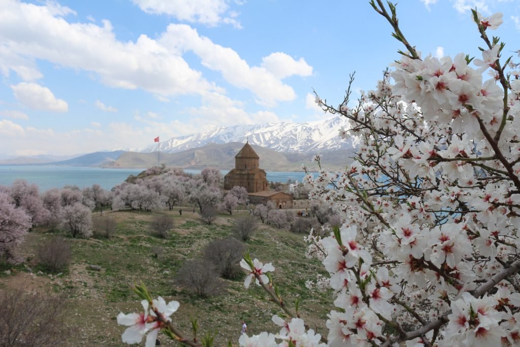 Van Gölü’nde bulunan tarihi Akdamar Adası, havaların ısınmasıyla beraber badem ve kayısı çiçeklerinin çiçek açmasıyla ziyaretçilerini büyülüyor. Özellikle Nisan ayında ağaçların çiçek açmasıyla ziyaretçilerine görsel şölen sunan ada, turist yoğunluğuna da neden oluyor. Adanın yeşil örtüsü, badem ağaçlarının pembe, beyaz çiçekleri, Van Gölü’nün mavisi ve Artos Dağı’ndaki beyaz kar örtüsü, renk cümbüşü oluşturuyor.