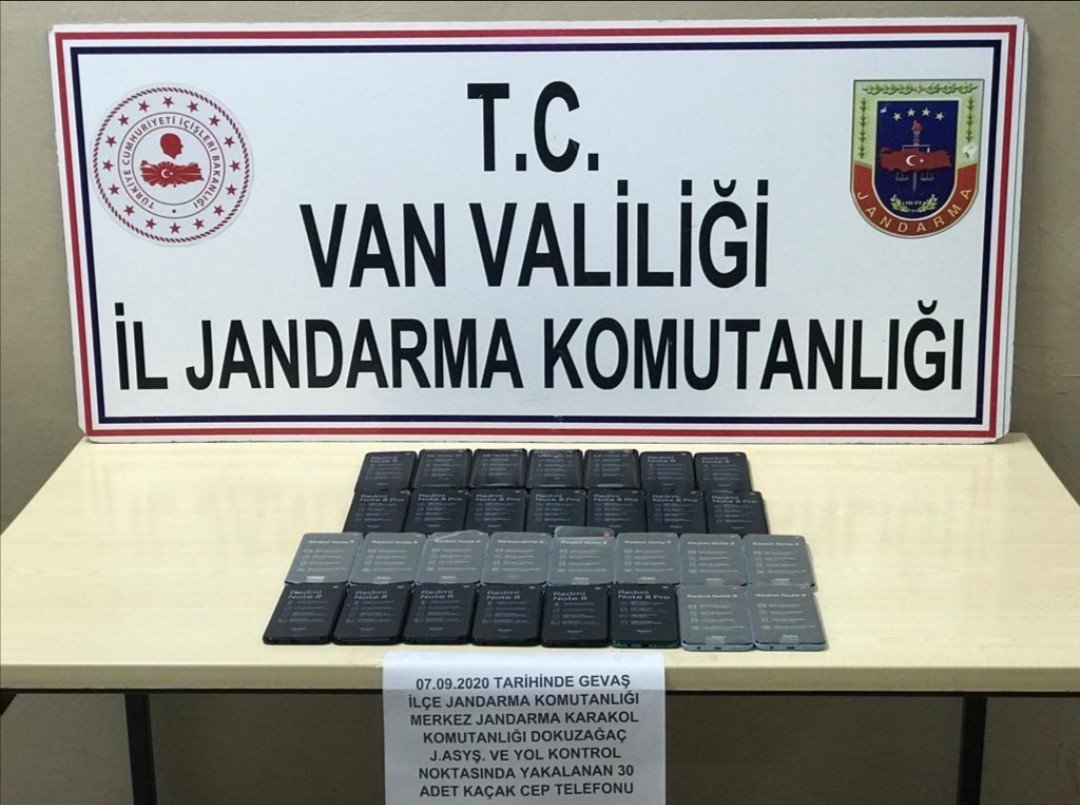 Edinilen bilgiye göre, Gevaş İlçe Jandarma Komutanlığına bağlı ekipler, Dokuzağaç Jandarma Asayiş ve Yol Kontrol Nokatasında durumundan şüphelenilen bir araçta arama yapıldı. Yapılan aramada yurda yasadışı yollarla yurda sokulduğu tespit edilen 30 adet kaçak cep telefonu ele geçirildi.