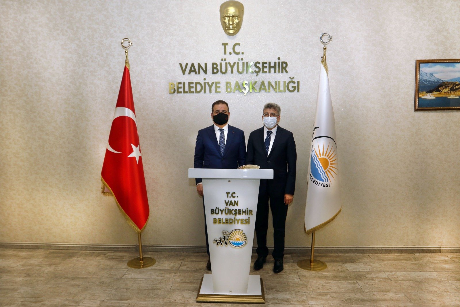 Çeşitli temaslarda bulunmak üzere Van’a gelen Hakkari Valisi ve Belediye Başkan Vekili İdris Akbıyık Van Valisi ve Büyükşehir Belediye Başkan Vekili Mehmet Emin Bilmez’i Büyükşehir Belediyesindeki makamında ziyaret etti.