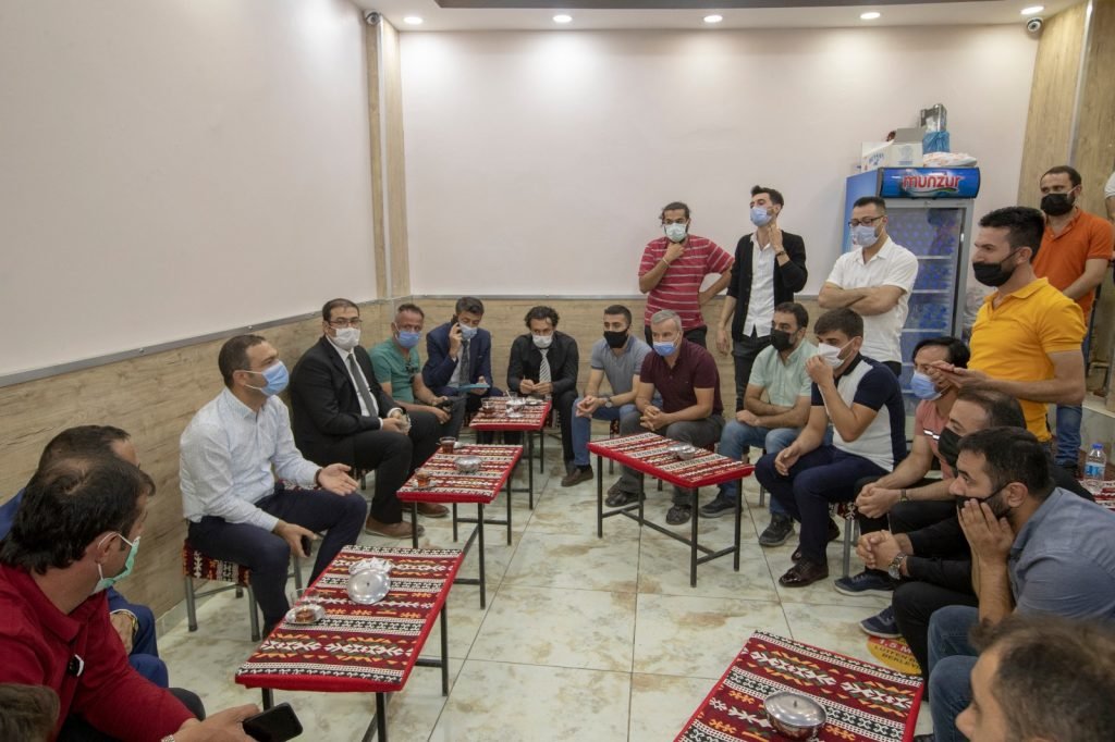 İlçedeki vatandaşlarla mahalle toplantılarında bir araya gelen Kaymakam Aslan, vaktinin büyük bir bölümünü de esnaf ziyaretine ayırıyor. Koronavirüs tedbirleri kapsamında geçici olarak kapanan işyerleri, 1 Haziran’dan itibaren faaliyetlerine yeniden başlarken, Başkan V. Aslan da o günden bu yana ziyaretlerine devam ediyor.