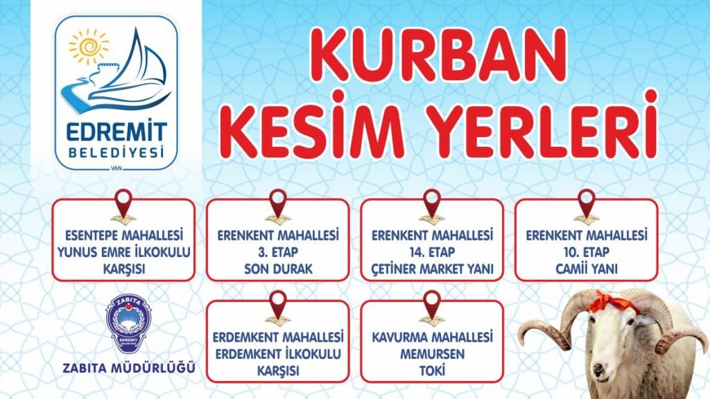 Edremit Belediyesi tarafından yapılan açıklamada, “İlçemizde kurban kesim yerleri belirlenmiştir. Tüm hijyen ve temizlik önlemlerini aldık. Maske, mesafe ve hijyen kurallarına uyarak sizin için ayrılan kurban kesim yerlerinde kesim yapabilirsiniz.” İfadelerine yer verildi.