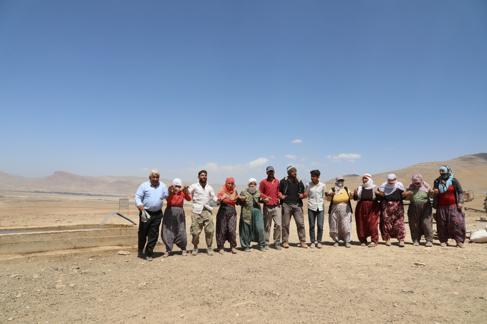 Van’ın Gürpınar ilçesi Sakalar (Xosp)Mahallesi’nde Büyükşehir Belediyesi’nin hayvan içme suyu sondaj çalışması renkli görüntülere sahne oldu. Arazide su bulunması mahalleli tarafından seslendirilen şarkılar ve halaylarla kutlandı.